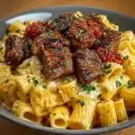 Imagine coming home to the enticing scent of steak simmering in your skillet, that rich, smoky aroma wrapping around you like a warm hug after a long day. This is a dish that brings people together, whether it is a casual dinner with friends or a heartfelt family meal. You’ll be creating new memories while enjoying each delightful forkful of cheesy rigatoni intertwined with spicy steak tips.