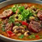This Spicy Creole Black-Eyed Peas with Sausage recipe will quickly become a cherished staple in your kitchen, perfect for cozy dinners or gatherings.