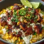 Street Corn Chicken and Rice Bowls offer a delicious escape into a world of flavor that will make your taste buds sing. This recipe is accented with vibrant ingredients, creating a symphony of color and aroma in your kitchen. It’s perfect for weeknight dinners, yet elegant enough for special occasions. Consider the simple pleasure of gathering around a table filled with laughter, especially during the holidays or a family celebration. The creamy sauce tied together with lime and spices creates a balance between comfort and excitement. Its freshness and warmth are comforting yet thrilling. It’s the kind of recipe you’ll come back to all year long.